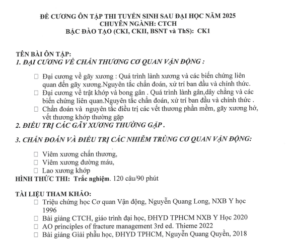 Y Thư Quán trân trọng giới thiệu Bộ đề CK1 Chấn Thương Chỉnh Hình (CTCH), được cập nhật đầy đủ và chi tiết theo chương trình mới nhất, giúp các bác sĩ ôn luyện hiệu quả và chuẩn bị kỹ lưỡng cho kỳ thi CK1 chuyên ngành CTCH.